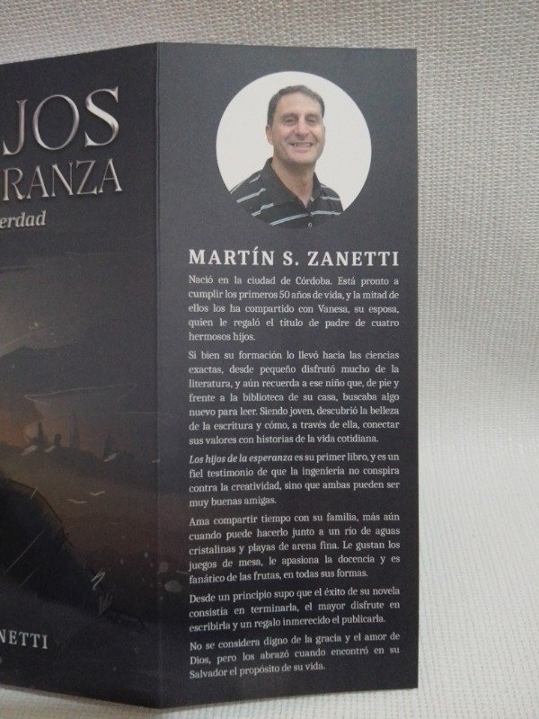 Nació en la ciudad de Córdoba. Está pronto a cumplir los primeros 50 años de vida, y la mitad de ellos los ha compartido con Vanesa, su esposa, quien le regaló el título de padre de cuatro hermosos hijos. Si bien su formación lo llevó hacia las ciencias exactas, desde pequeño disfrutó mucho de la literatura, y aún recuerda a ese niño que, de pie y frente a la biblioteca de su casa, buscaba algo nuevo para leer. Siendo joven, descubrió la belleza de la escritura y cómo, a través de ella, conectar sus valores con historias de la vida cotidiana. Los hijos de la esperanza es su primer libro, y es un fiel testimonio de que la ingeniería no conspira contra la creatividad, sino que ambas pueden ser muy buenas amigas. Ama compartir tiempo con su familia, más aún cuando puede hacerlo junto a un río de aguas cristalinas y playas de arena fina. Le gustan los juegos de mesa, le apasiona la docencia y es fanático de las frutas, en todas sus formas. Desde un principio supo que el éxito de su novela consistía en terminarla, el mayor disfrute en escribirla y un regalo inmerecido el publicarla. No se considera digno de la gracia y el amor de Dios, pero los abrazó cuando encontró en su Salvador el propósito de su vida.