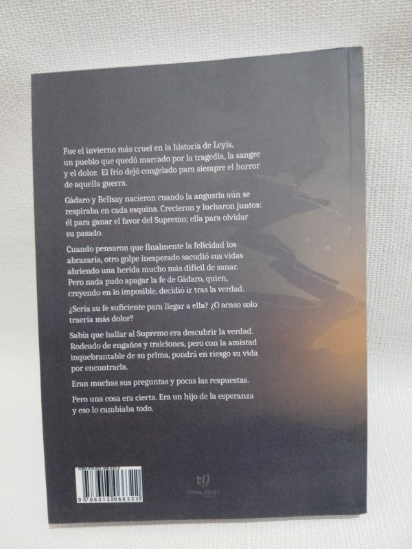 Fue el invierno más cruel en la historia de Leyis, un pueblo que quedó marcado por la tragedia, la sangre y el dolor. El frío dejó congelado para siempre el horror de aquella guerra. Gádaro y Belisay nacieron cuando la angustia aún se respiraba en cada esquina. Crecieron y lucharon juntos: él para ganar el favor del Supremo; ella para olvidar su pasado. Cuando pensaron que finalmente la felicidad los abrazaría, otro golpe inesperado sacudió sus vidas abriendo una herida mucho más difícil de sanar. Pero nada pudo apagar la fe de Gádaro, quien, creyendo en lo imposible, decidió ir tras la verdad. ¿Sería su fe suficiente para llegar a ella? ¿O acaso solo traería más dolor? Sabía que hallar al Supremo era descubrir la verdad. Rodeado de engaños y traiciones, pero con la amistad inquebrantable de su prima, pondrá en riesgo su vida por encontrarla. Eran muchas sus preguntas y pocas las respuestas. Pero una cosa era cierta. Era un hijo de la esperanza y eso lo cambiaba todo.
