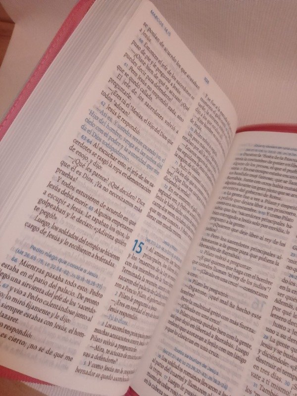 Esta Biblia es ideal para llevar a cualquier lugar por su tamaño tipo agenda. Con letra 11 puntos, ofrece una lectura cómoda y clara, sin sacrificar espacio. La Traducción en Lenguaje Actual (TLA) es perfecta para un entendimiento más claro de la Palabra de Dios, la meditación y los momentos de reflexión. La tipogra a en dúo tono permite una rápida ubicación de los indicadores de versículos y capítulos, además de las palabras de Jesús resaltadas.