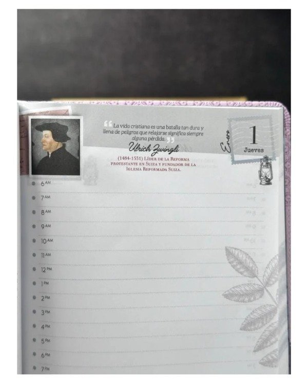 Esta agenda está pensada para acercar al público general la riqueza de los autores clásicos, además de ser una agenda única de gran calidad y con una presentación extraordinaria. Cada día podremos leer una pequeña biografía del autor clásico, una frase célebre que escribió, un retrato de cómo era y un texto de las Escrituras acorde con la sentencia que anotó.